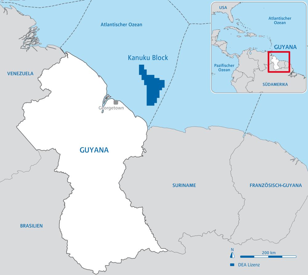 Im Jahr 2013 hat DEA mit Betriebsführer Repsol eine Vereinbarung zum Einstieg mit einem Anteil von 30 Prozent in die Lizenz Kanuku vor der Küste von Guyana getroffen. Die Lizenz befindet sich im Guyana-Suriname-Becken, 80 Kilometer vor der nordöstlichen Küste Südamerikas und umfasst eine Fläche von 6.525 Quadratkilometer.