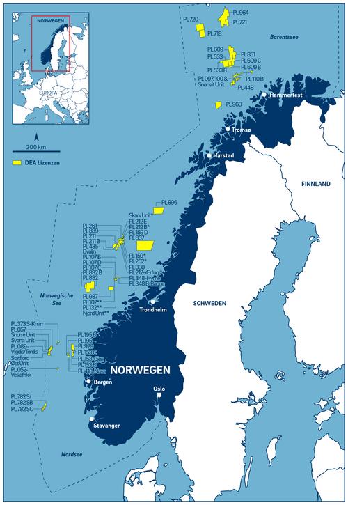 DEA verfügt in Norwegen über ein ausgewogenes und vielversprechendes Lizenzportfolio mit Lizenzen und Projekten in allen wichtigen Phasen sowie in jeder Region des Norwegischen Kontinentalschelf.