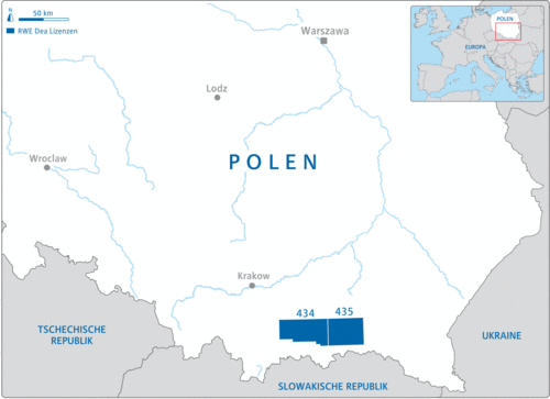 DEA hält derzeit Rechte an zwei Lizenzen zur Suche (Exploration) nach Kohlenwasserstoffen in den Blöcken 434 und 435. Die Lizenzen befinden sich circa 100 Kilometer südöstlich von Krakau in den Karpaten und besitzen eine Gesamtfläche von rund 2200 Quadratkilometern. In beiden Lizenzen ist DEA Betriebsführer und hält 100 Prozent der Anteile.